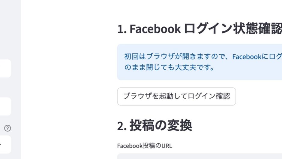 開発してもらったアプリは、Facebook投稿とWordPressを接続して、Facebook投稿のURLを入力したら、本文と画像を下書きにするというものです。